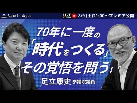 【Japan In-depthチャンネル】2025年8月9日(土)21時~ ゲスト:国民民主党足立康史参議院議員 70年に一度の「時代をつくる」その覚悟を問う!