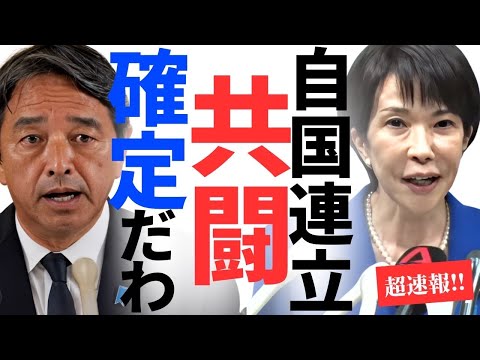 みなさん、衝撃的な展開です。国民民主党の榛葉幹事長と、総裁選に出馬している有力総理候補の高市早苗氏が共闘確定しました。衝撃発言をした榛葉幹事長の会見映像を今回の動画で皆さんにお見せします。そして、最後に高市氏が自身の出馬会見で国民民主党との共闘を示唆する発言をした映像も。では、どうぞ。