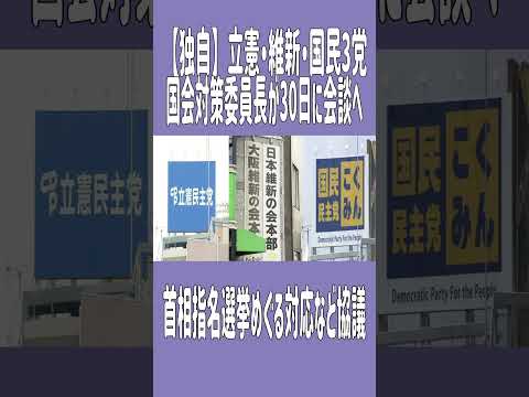 【独自】立憲・維新・国民3党の国会対策委員長が30日に会談へ…首相指名選挙めぐる対応など協議 #首相指名 #立憲民主党 #日本維新の会 #国民民主党 #野田佳彦