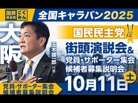 10/11大阪 国民民主党街頭演説会 玉木雄一郎 総理になる覚悟がある発言の真相を語る!?2025-10-1110/11大阪 国民民主党街頭演説会 玉木雄一郎 総理になる覚悟がある発言の真相を語る!? #国民民主 #玉木雄一郎 #榛葉賀津也 #演説 Youtubeへの切り抜き転載はお断りしております YouTube話題