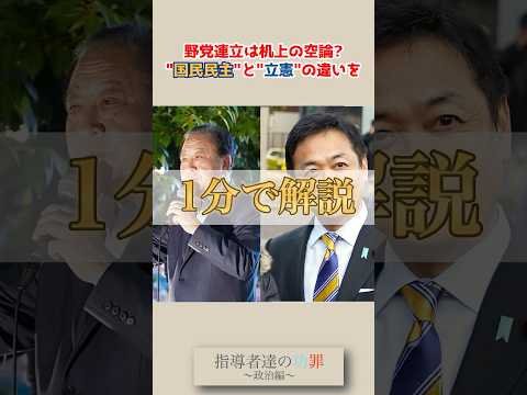 わかりやすく国民民主党と立憲民主党の違いを1分で解説 #玉木雄一郎 #野党連立 #総理候補 #政治ニュース #功罪シリーズ