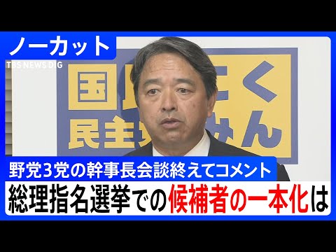 【ノーカット】国民民主党・榛葉賀津也幹事長 野党3党の幹事長会談を終えてコメント 総理大臣指名選挙での「野党候補」一本化は|TBS NEWS DIG