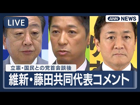 【ライブ】維新・藤田共同代表コメント 立憲・野田代表 国民・玉木代表との会談後【LIVE】(2025年10月15日) ANN/テレ朝