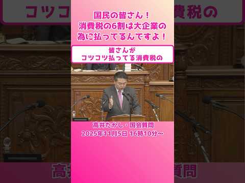 国民の皆さん!消費税の6割は大企業の為に払ってるんですよ!#れいわ新選組 #山本太郎 #消費税廃止 #インボイス廃止 #現金給付 #消費税減税 #ガソリン減税 #高井たかし #特別会計 #一般会計