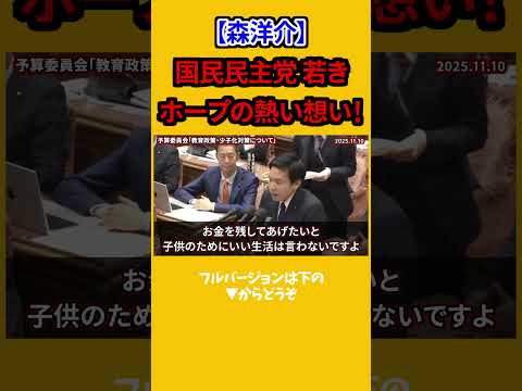 【森ようすけ】国民民主党の若きホープ!異次元の少子化対策は控除も手当も両方必要!#高市早苗 #国会中継 #玉木雄一郎 #榛葉賀津也
