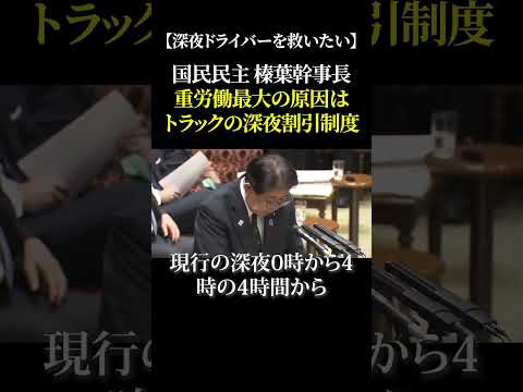 【深夜ドライバーを救いたい】国民民主 榛葉幹事長 重労働最大の原因はトラックの深夜割引制度 #自民党 #高市早苗 #国民民主党 #榛葉幹事長 #トラック