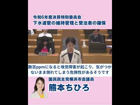 国民民主党横浜市会議員(南区選出)熊本ちひろ先生の質疑。決算特別委員会下水道局。