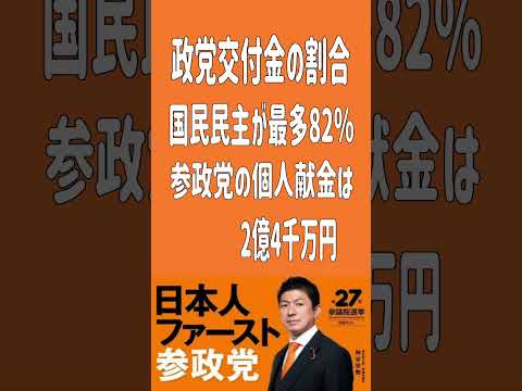 政党交付金の割合、国民民主が最多82% 参政党の個人献金は2億4千万円 #参政党 #政党交付金 #個人献金