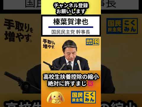国民民主党 榛葉賀津也 幹事長 高校生扶養控除の縮小 与党が2026年度税制改正で高校生の子どもを持つ親らの扶養控除を縮小する方向で検討していた件について物申す!