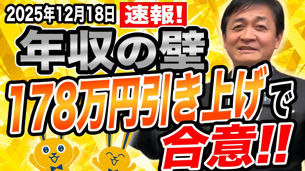 スポンサーリンク 【速報】国民民主ついにやった!年収の壁 178万円に引き上げで合意 YouTube X コピー 2025.12.18 【速報】国民民主ついにやった!年収の壁 178万円に引き上げで合意 #政治 #国民民主党 #玉木雄一郎 #高市早苗 #大竹栄喜 引用 【速報】年収の壁 178万円に引き上げで合意 皆さんの手取りが増える! 玉木雄一郎が感謝!チャンネル登録お願いします!↓年収の壁 #178万 #高市総理 #国民民主党 #玉木雄一郎 【たまきチャンネルは切り抜きOK!! どんどんお願いします!】ただし、...