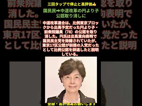 国民民主党→中道改革連合の円より子、公認取り消しに #中核連 #政治