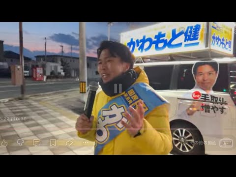 スポンサーリンク かわもと健一 国民民主党 街頭演説ライブ イオン乙金さん前(大野城市) YouTube X コピー 2026.01.29 かわもと健一 国民民主党 街頭演説ライブ イオン乙金さん前(大野城市)
