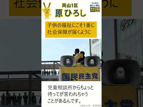 1/28 国民民主党 岡山1区 原ひろし候補 子供の福祉こそ1番に社会保障が届くように