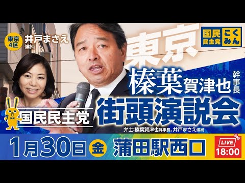 国民民主党街頭演説会 1月30日(金)18:00〜 @蒲田駅西口 弁士:#榛葉賀津也 幹事長、#井戸まさえ 候補