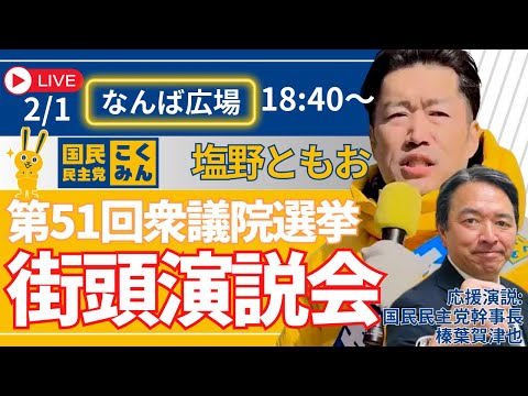 【18:00よりLIVE予定】国民民主党 榛葉幹事長 応援街頭演説会
