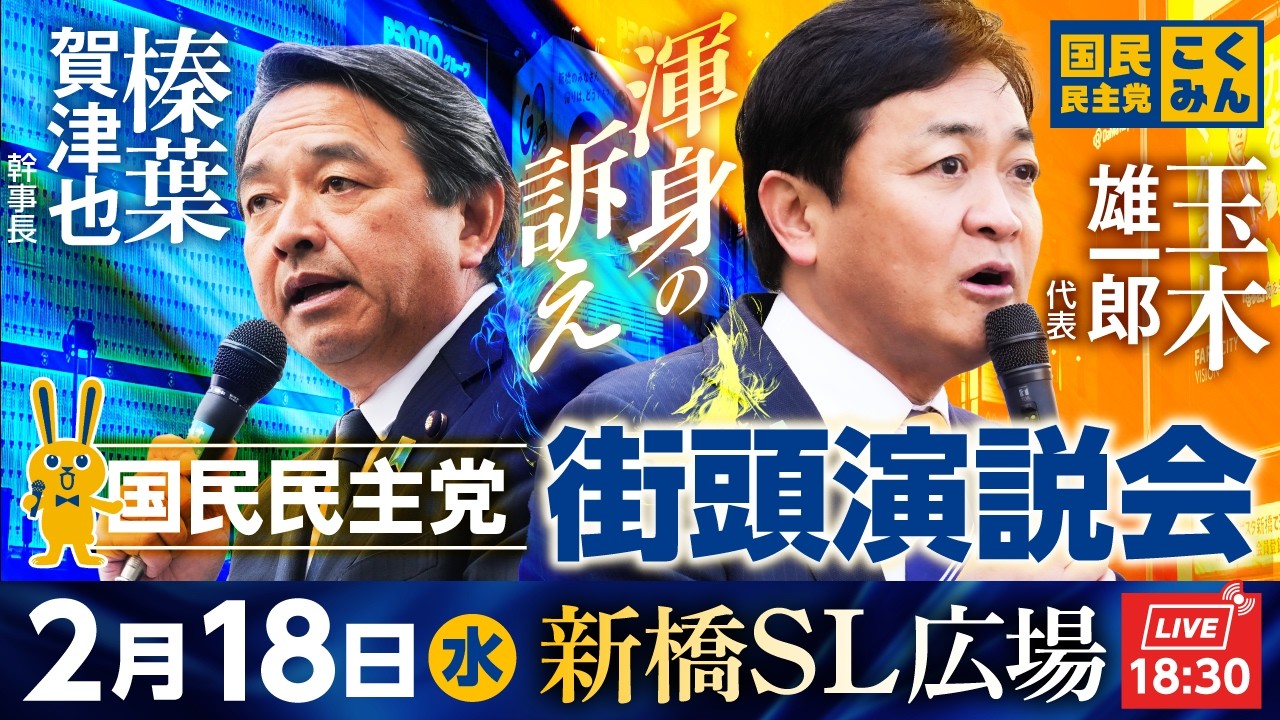 スポンサーリンク 【 #国民民主党 】新人議員お披露目①~佐々木真琴衆議院議員【街頭演説会】 YouTube X コピー 2026.02.20 【 #国民民主党 】新人議員お披露目①~佐々木真琴衆議院議員【街頭演説会】 2026.02.18 街頭演説会動画から引用 新橋駅前街頭演説会 2月18日(水)18:30〜 弁士:玉木雄一郎 代表、榛葉賀津也 幹事長 ほか国民民主党公式ウェブサイトHP:国民民主党YouTubeチャンネル :国民民主党Facebook: