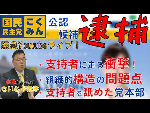 【緊急Youtubeライブ】国民民主党公認候補の逮捕について市議会議員と政治運動家の立場から論説します