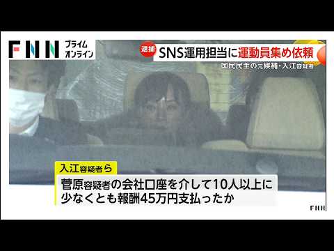 SNS運用担当に「人を集めて欲しい」と依頼…国民民主党候補者・入江伸子容疑者ら3人逮捕 「日当1万円」でインターン学生の選挙運動員に報酬支払った疑い(2026年02月21日)