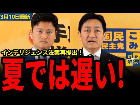【国民民主党 3/10最新】玉木「ペースが遅い気がする」高市総理が言ったものは全て盛り込まれているインテリジェンス法案を提出!