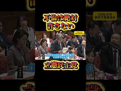 スポンサーリンク 不倫は許さない立憲民主党 #高市早苗 #今野忍 #国民民主党 #チームみらい #立憲民主党 YouTube X コピー 2026.03.27 不倫は許さない立憲民主党 #高市早苗 #今野忍 #国民民主党 #チームみらい #立憲民主党 引用:参議院インターネット審議中継