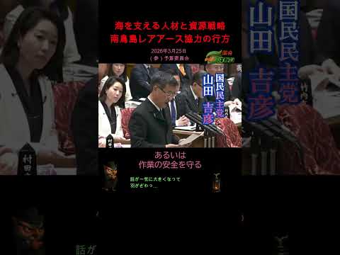 【海を支える人材と資源戦略/高市内閣VS国民民主党】2026年3月25日(参)予算委員会#山田吉彦#高市早苗#日米首脳会談#エネルギー#レアアース#南鳥島#日米共同開発#トランプ#海洋国家