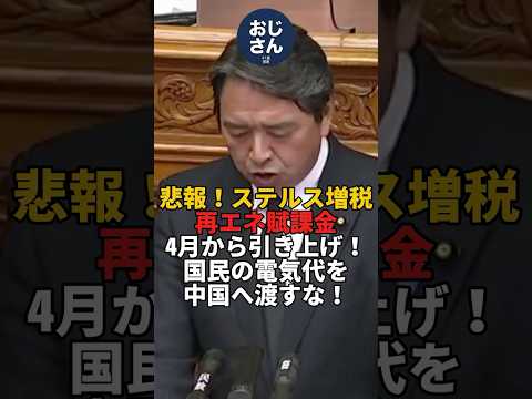 悲報!ステルス増税!再エネ賦課金、4月から引き上げ!国民の電気代を中国へ渡すな!#政治 #自民党 #国会中継 #国民民主党 #榛葉幹事長 #再エネ賦課金 #メガソーラ #再エネ発電 #太陽光パネル