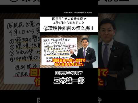 スポンサーリンク 【国民民主党の政策実現で4月1日から変わること】②環境性能割の恒久廃止 #国民民主党 #玉木雄一郎 #政策 #4月1日 #自動車 #車 #税金 #廃止 YouTube X コピー 2026.04.09 【国民民主党の政策実現で4月1日から変わること】②環境性能割の恒久廃止 #国民民主党 #玉木雄一郎 #政策 #4月1日 #自動車 #車 #税金 #廃止