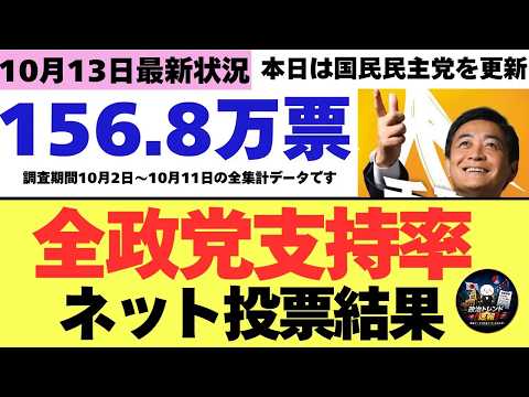 【10/13最新調査】本日は国民民主党更新!全政党支持率156.8万票ネット投票結果