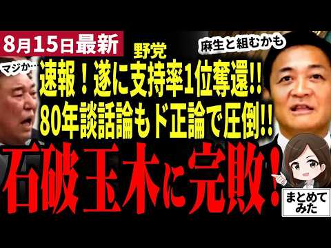 【国民民主党最新】「石破より玉木が世論だ!」遂に野党支持率一位奪還!総裁選前倒しで石破退陣後麻生と組んで玉木総理誕生がにわかに噂される!戦後80年の見解発出が野望の石破は玉木に及ばない?【勝手に論評】