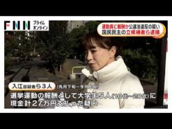 逮捕の国民民主の候補者ら SNS運用会社を介し報酬か(2026年2月21日) 衆議院選挙で運動員に報酬を支払ったとして国民民主党の候補者ら3人が逮捕された事件で、候補者がSNSの運用会社を介し報酬を支払っていたことが分かりました。 入江伸...